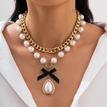 Nueva moda gargantilla de moda Conjunto 2 piezas de perlas con cuentas y oro de 18 quilates gargantilla de eslabones cubanos collar de mujer al por mayor