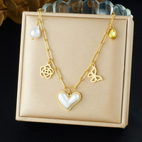 Luxe En Acier Inoxydable 18k Or Vintage Perle Zircon Fleur papillon Pendentif Collier Coeur Arc Collier Femmes Bijoux pour Cadeau
